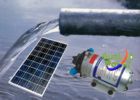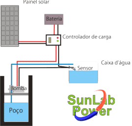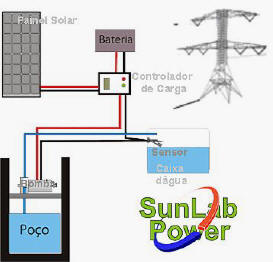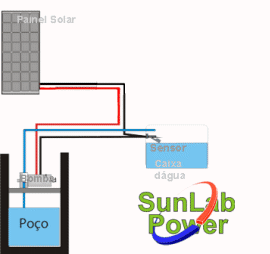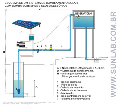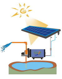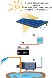 energia solar durante o dia. Sistemas simples compostos pela bomba e painel solar.