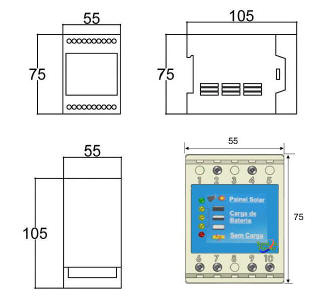 Regulagem automática de tensão com proteção: Circuito de Proteção e Anti-Falha: O circuito do controlador protege da sobrecarga e sobre-descarga, evitando danos a bateria e ao sistema. Regula a tensão de entrada dos painéis solares na tensão de trabalho do sistema.