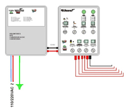 QAC - Quadro de alimentação a energia contínua para a operação do heliponto, independente da rede elétrica. Contém circuito de controle microprocessado, carregador de baterias, conversores e proteções. |