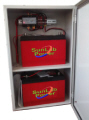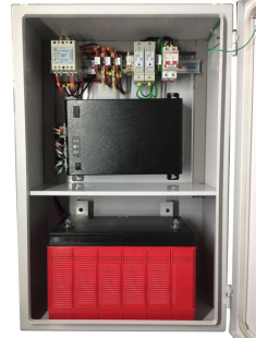 Construção em Technopoli, polímero especial para aplicações elétricas. Gabinete de sobrepor com tampa em acrílico transparente e travas de fechamento. Fixa-se em superfícies planas através de parafusos. Conecta as luzes e indicador de vento (biruta) ao quadro de energia. Permite opcionalmente operar em AC e CC, com tensões diferentes, com a maxima segurança.