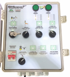 O SHL é o painel de controle do sistema de iluminação do heliponto. Garante a máxima segurança e confiabilidade ao sistema, operando com luzes de balizamento a LED, nas tensões e correntes do circuito elétrico. O SHL comanda diversos tipos de balizadores e elementos de iluminação de forma simples e eficaz. Alterna os níveis de intensidade das luzes e sincroniza os efeitos adicionais dos sinalizadores da SunLab Power, utilizando circuitos micro-controlados.