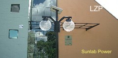 Iluminação com dois refletores retangulares, foco regulável, a energia solar. |