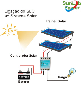 É composto pelo módulo (painel) solar, bateria, controlador de carga