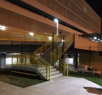 em aço e alumínio, com três metros de altura, tratamento anticorrosivo e