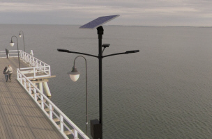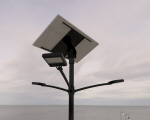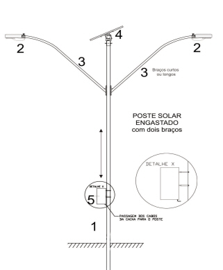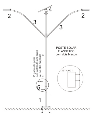 em postes, gabinete especial contendo bateria(s), controlador solar
