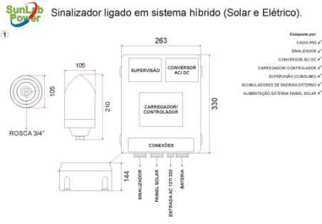 um Sistema de Balizamento para Obstáculos Aéreos alimentado tanto por energia solar quanto elétrica.